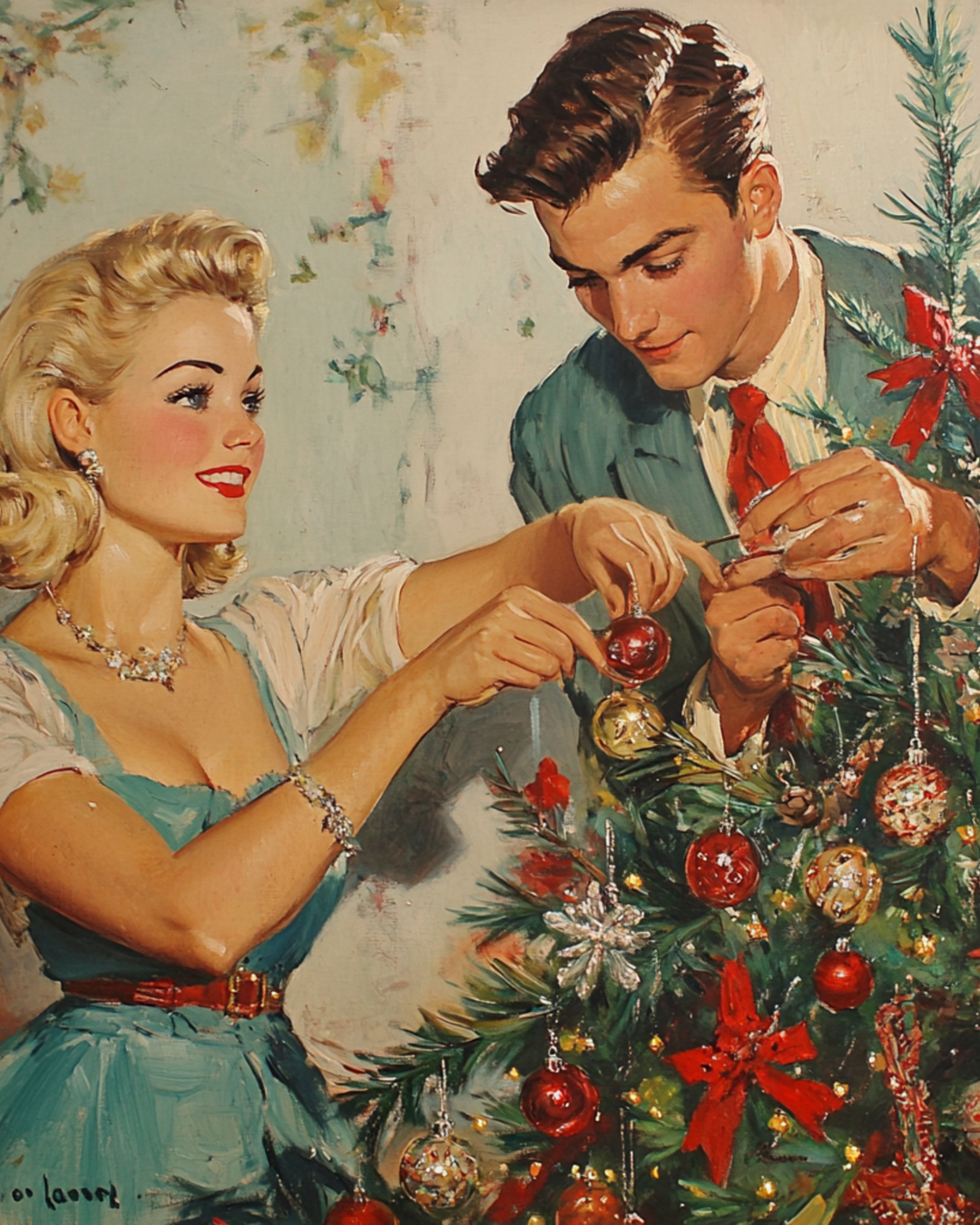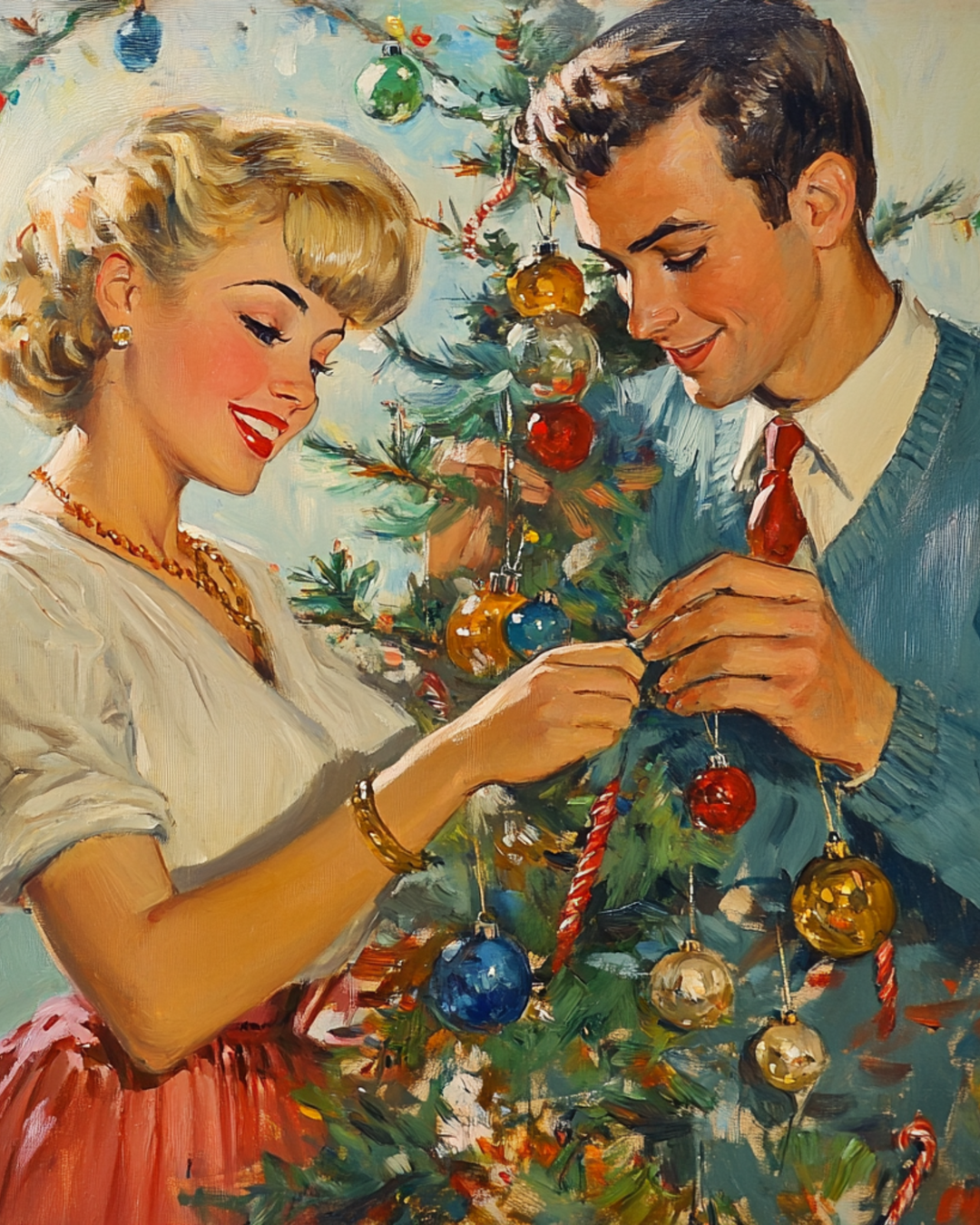 Vintage Formal Couple Decorating Christmas Tree Art Print