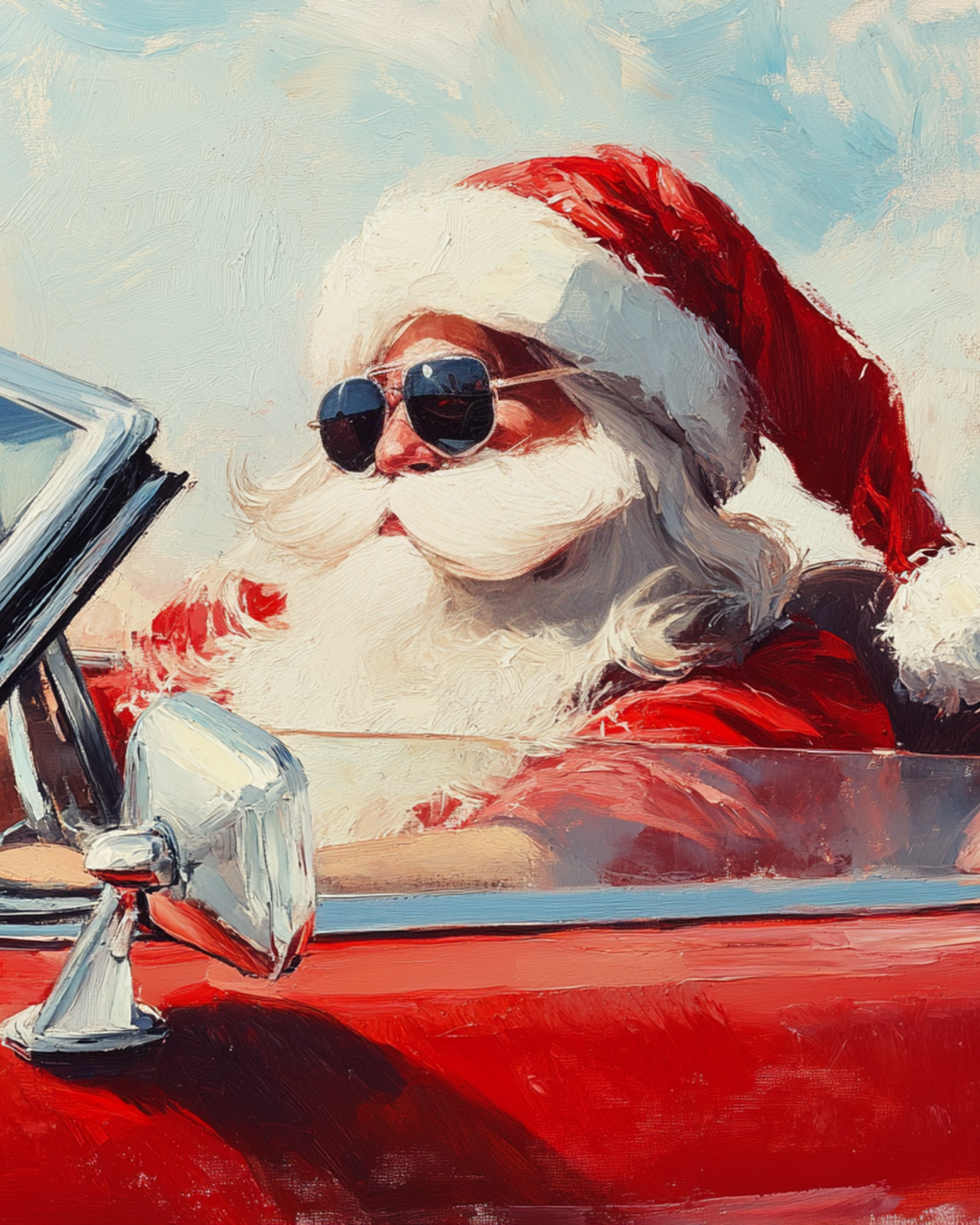 Girl Sitting on Santa's Lap Christmas Winter Art Print