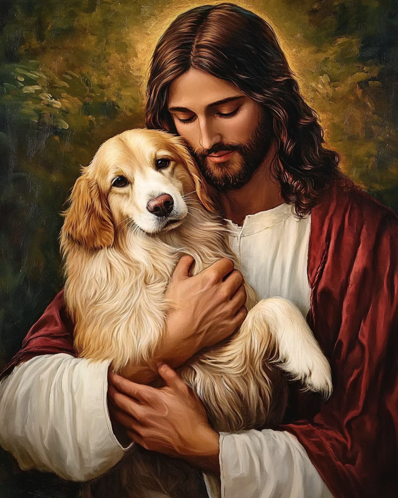 Embrace faith and devotion with this inspiring Christian art print depicting Jesus in a tender moment with a spirited Terrier. This touching composition celebrates the sacred connection between spiritual grace and the loyal companionship of our four-legged friends. Display this uplifting artwork in your home to cultivate daily inspiration, reminding you of God's love for all His creations. A heartfelt gift for those who cherish both their faith and their beloved pets.