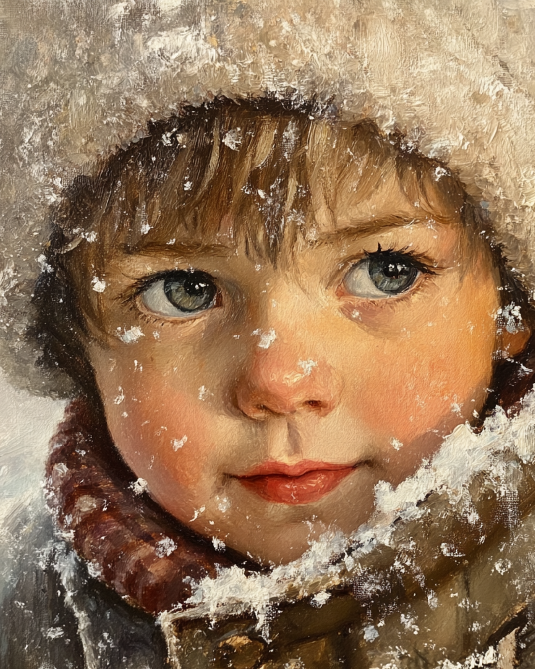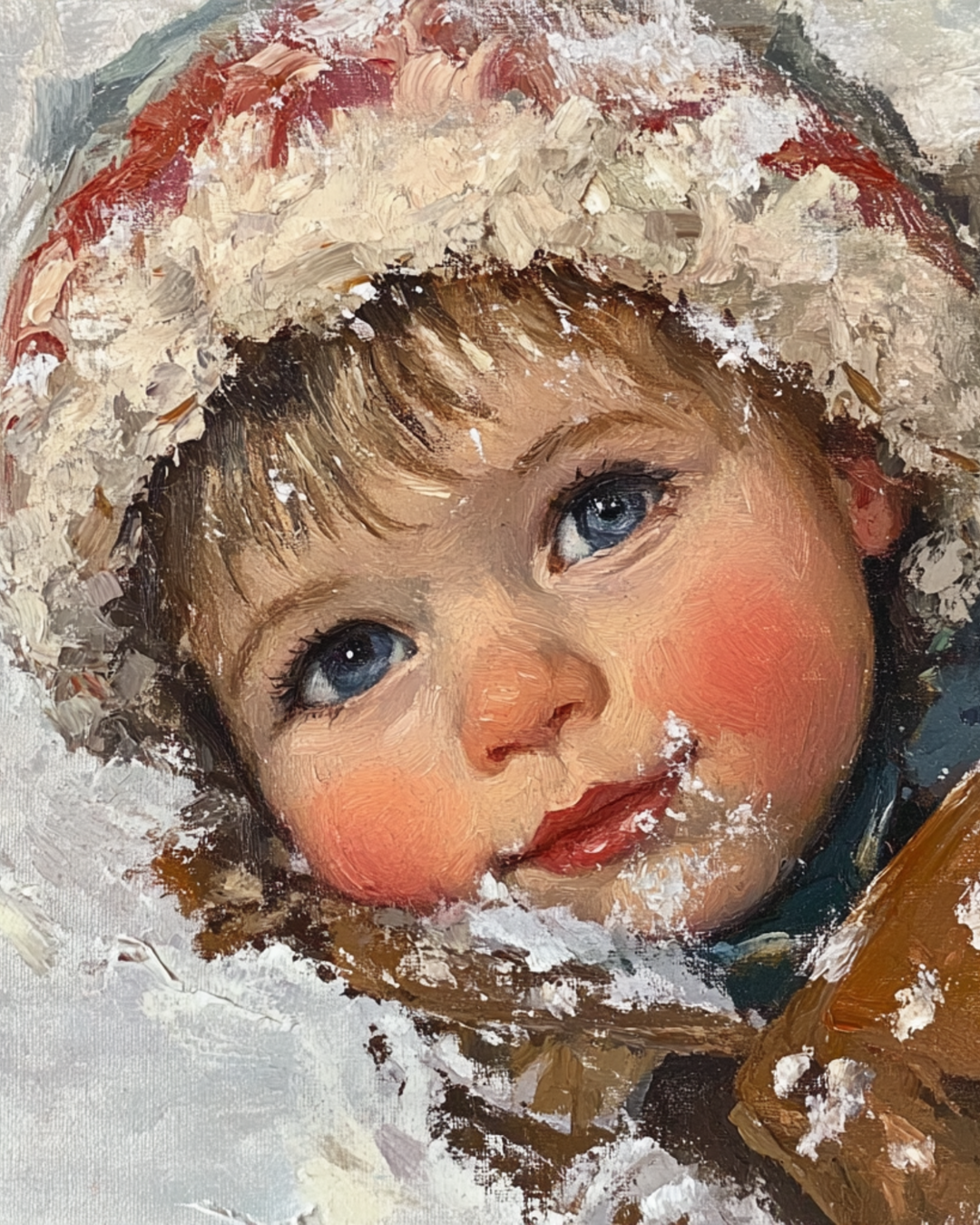 Boy in snow closeup Winter Art Print