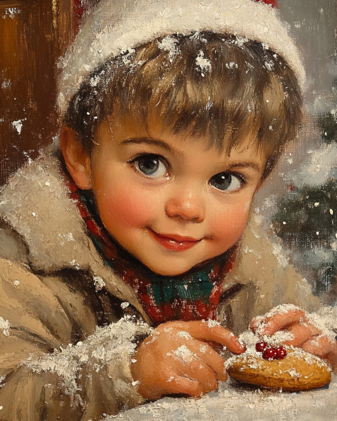 Boy with Christmas Cookie Winter Art Print