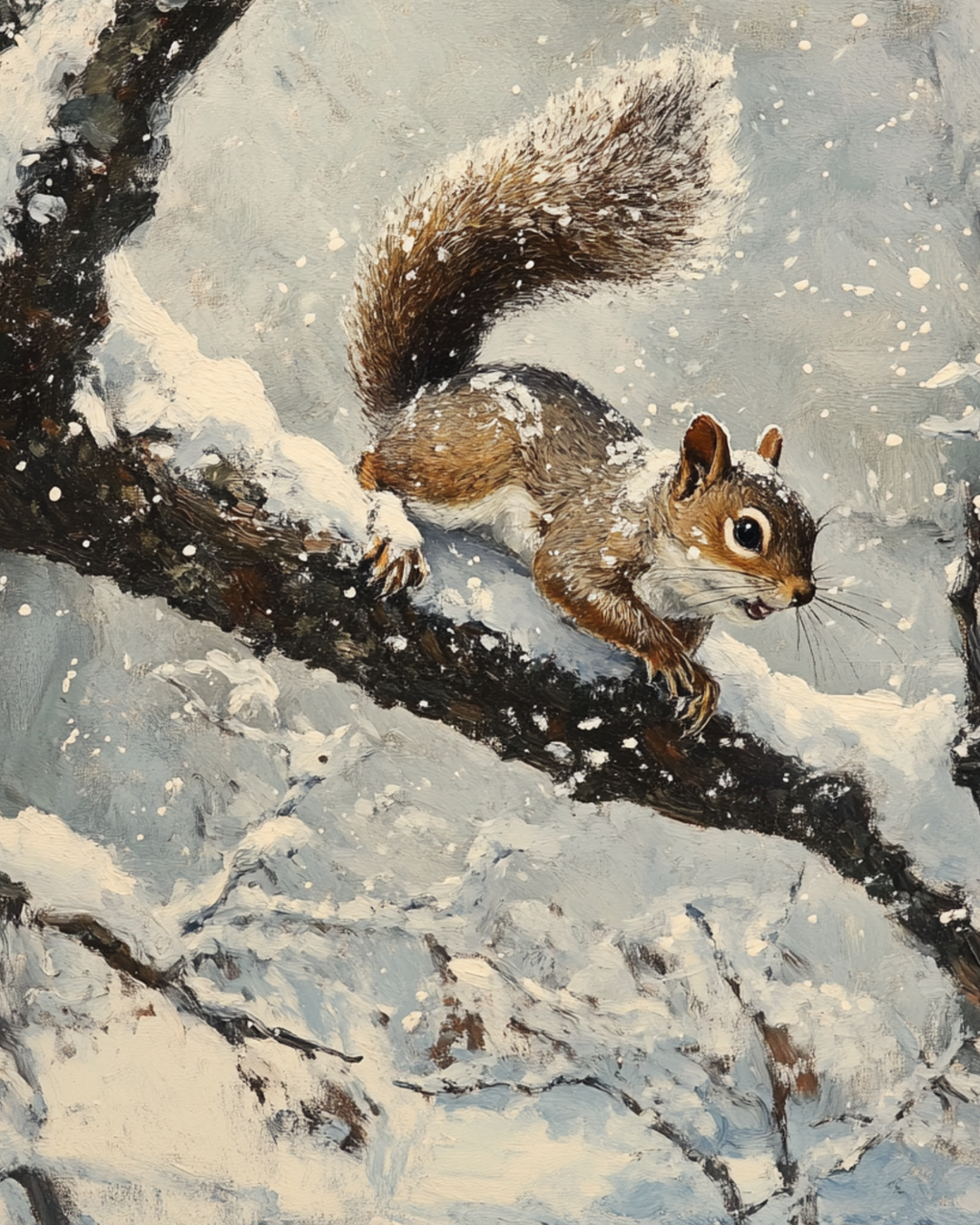 Squirrel in tree Winter Art Print